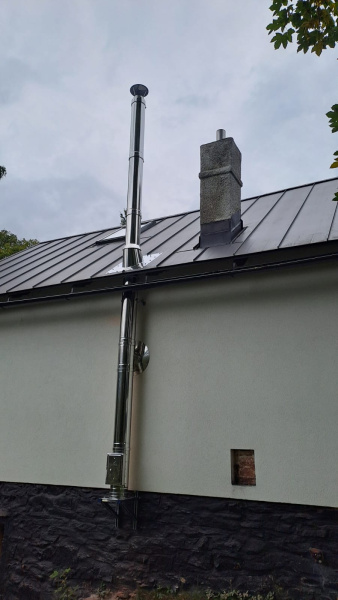 Realizace nerezového komínu na klíč v obci Adolfovice.