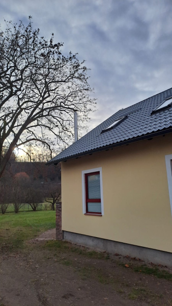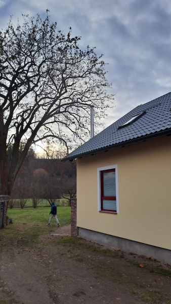 Instalace kamen a zateplení fasády (15 cm polystyren) plánováno na rok 2026.